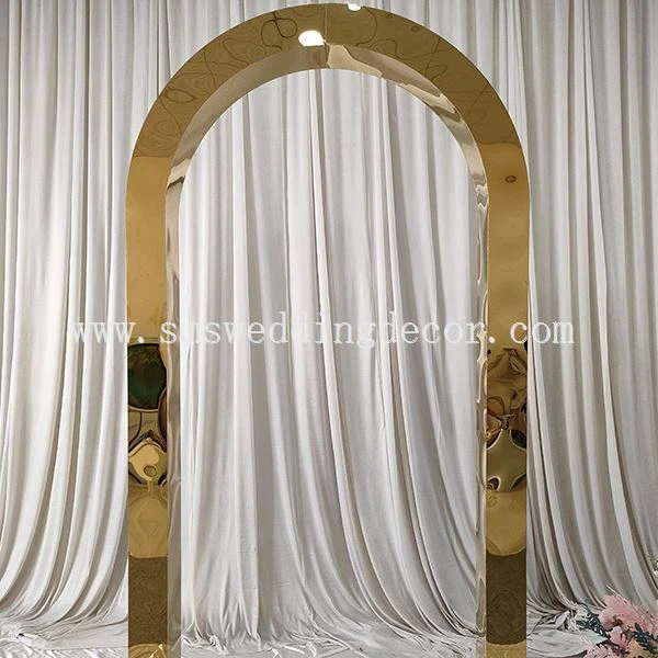 Este arco de acero para bodas es un arco circular independiente hecho de acero inoxidable de alta calidad. Como puede ver, los arcos de medio punto de acero inoxidable chapados en oro son brillo y textura en términos de rendimiento. Especialmente bajo el fondo y la iluminación de la luz natural y la luz, brilla como un espejo.