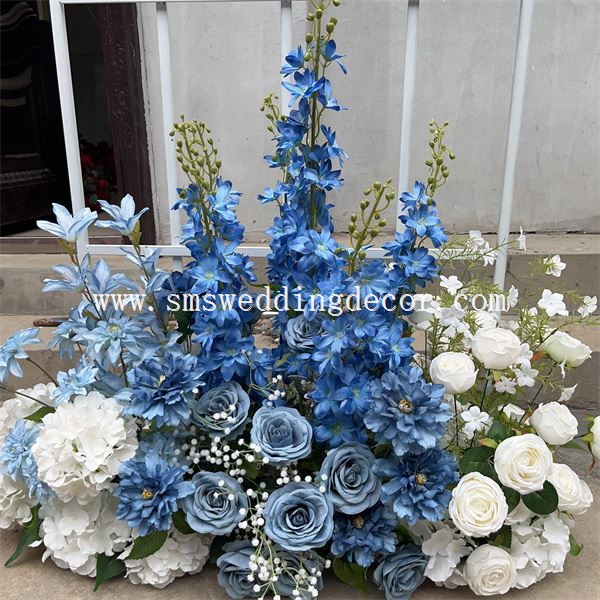 Esta flor de suelo azul tiene una combinación de colores azul y blanco, con capas claras. De un lado hay una hortensia blanca, del otro lado hay una rosa blanca, con rosas azules como color principal en el medio, combinadas con espuela de caballero azul, dando a las personas una sensación de libertad y sin restricciones. Se puede utilizar como pasillo para bodas.