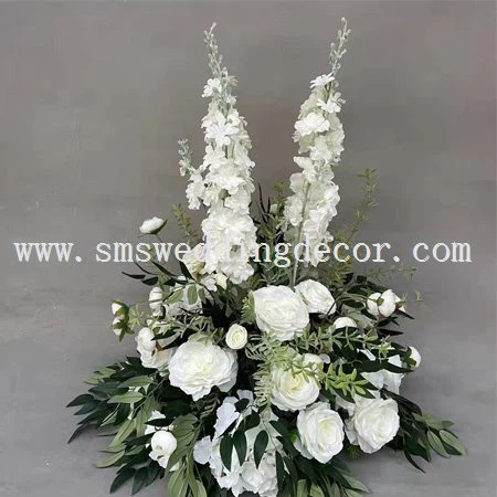 Este centro de mesa alto de color blanco y verde está hecho de flores de seda de alta calidad y vegetación simulada con un diámetro de unos 40 cm. Estos centros de mesa florales verdes y blancos consisten en rosas blancas simuladas, peonías y espuela de caballero. Su estilo elegante muestra el gusto aristocrático de la vida del propietario y decora un buen momento de la vida.